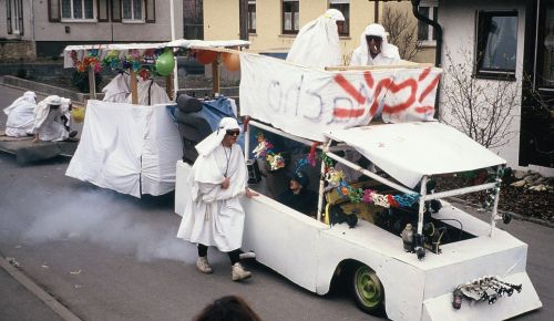 Im Jahr 1995 nahmen die Fasnetsfreunde so an der Dorffasnet teil. Auch den ersten auswärtigen Umzug absolvierte die Truppe bei den Nachbarn in Poltringen.